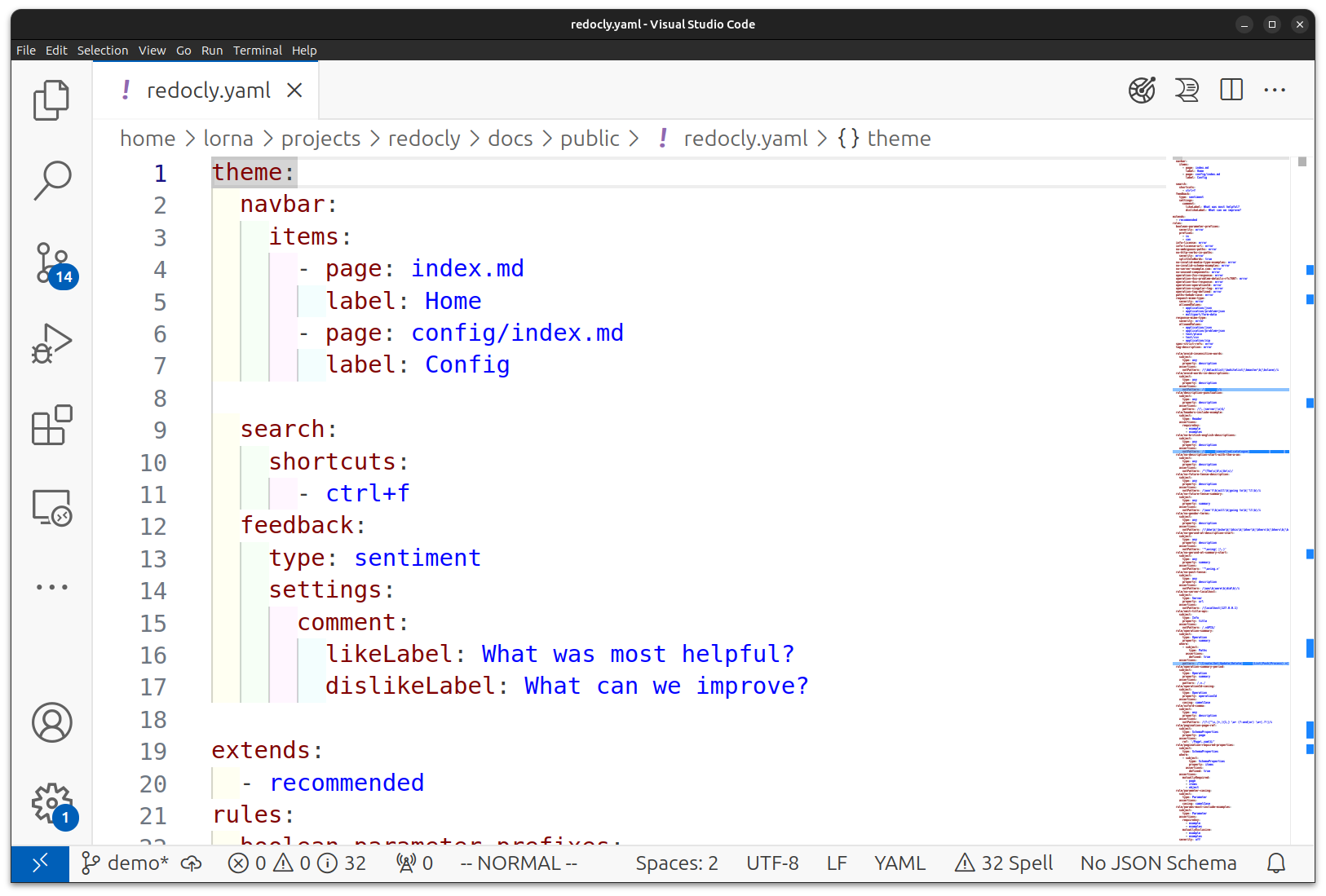Take some time to browse the plugins available for your preferred editor and try the ones that have support for YAML or the related formats you'll be using, such as OpenAPI. (Redocly has a VSCode extension that is useful for working with Redocly projects or OpenAPI files).