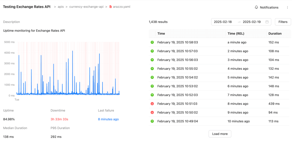 - Graphical reporting – Track API health over time and identify trends before they become problems.